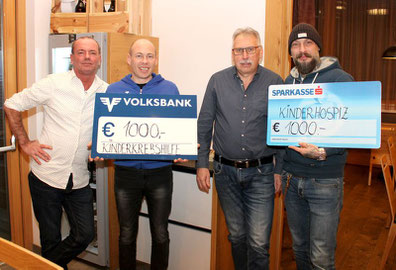 Im Beisein der Musiker Thomas Putzer (The Dreamers) & Mika Stokkinen ( The Ridin Dudes) Winterlandschafts- mitarbeiter Walter Böhm konnten wir am Montag, 20.01.2020 je € 1000.- an den Landesverband für Kinderhospiz und das St. Anna Spital für Kinderkrebshilfe übergeben. Herzlichen Dank allen Besuchern, den Musikbands Armin Schinkovitz & Band,